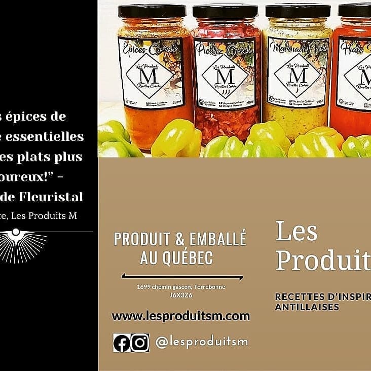 Merlande Fleuristal, cette femme forte, travaillante et débrouillarde, Québécoise d’origine Haïtienne, est aujourd’hui la Fondatrice / Présidente de la gamme de condiment »Les Produits M ». Végétarienne et passionnée de cuisine, Merlande adore se retrouver entouré de sa famille et amis autour d’une belle table garnie. Apprendre sur les différentes cultures, goûter de nouvelles saveurs et ayant toujours eu la main douce en cuisine, il y a quelques mois de cela, elle eu envie de relever de nouveaux défis. Faire ses propres épices et assaisonnements pour accompagner ses repas. Après beaucoup d’heures de travail et de dévouement, c’est de là que prend naissance : Les Produits M inc. Cette entreprise qui nous présente une gamme de condiments alimentaires de qualités, sont tous produits et emballés au Québec.